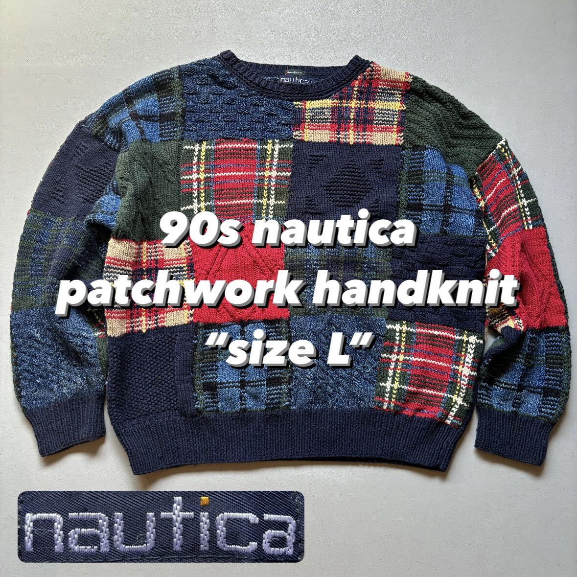 > 90s nautica patchwork handknit size L 90年代 ノーティカ ノーチカ パッチワーク ハンドニット セーター コットンニット マルチカラー