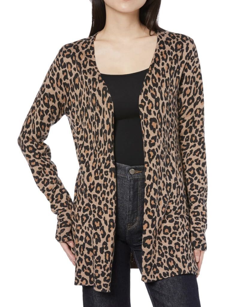 - 新品 [Amazon Essentials] カーディガン ニット ライトウエイト 前開き レディース キャメル ヒョウ柄 XS 未使用 (158)