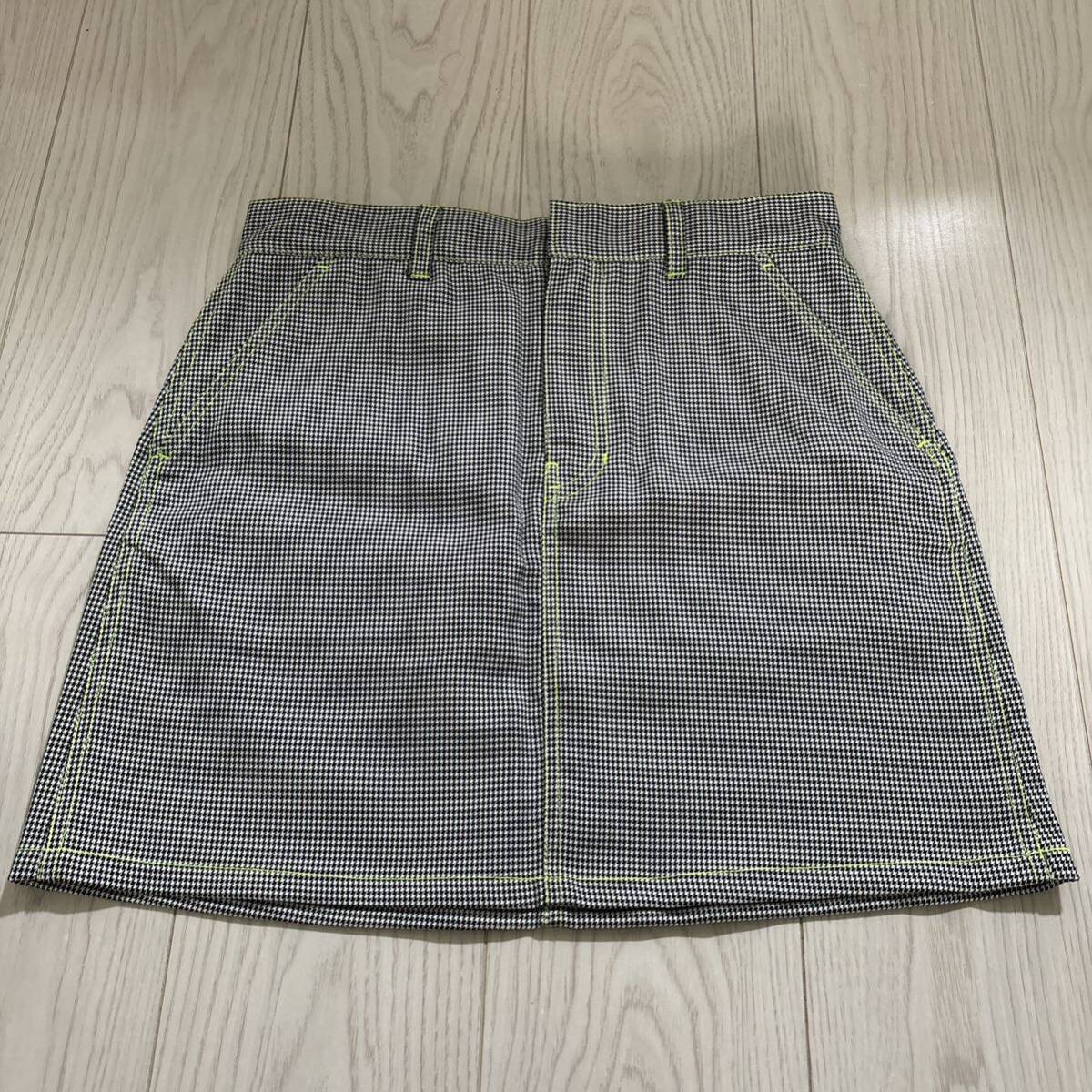 - 未使用●X-girl ネオン 千鳥格子 チェック ミニ スカート/蛍光色/ライン/エックスガール/ミニスカ/膝上/ゴルフ/スポーツ/千鳥柄 ★930-4