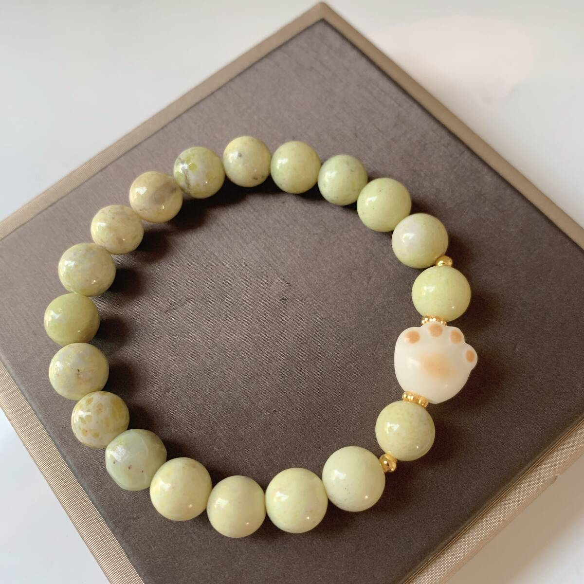 - ◇岫玉+白玉菩提(猫の手形)◇ボーウェナイト◇ブレスレット◇パワーストーン◇天然石◇巾着袋付き◇プレゼントにも 020B42507