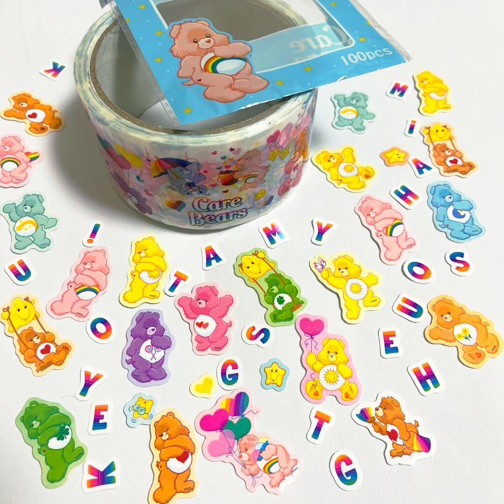 - レア ケアベア ステッカー シール 防水 ロールテープ ガムテープ ファンシー ラッピング クマ デザイン マステ パーティ かわいい グッズ