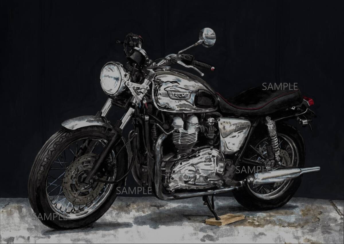 - A4プリントです トライアンフ ボンネヴィル 水彩画 バイクイラスト