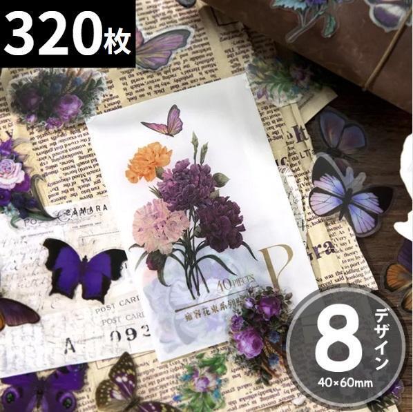 > 320枚 まとめ買い シール 花 透明 蝶 防水 おしゃれ アンティーク ビンテージ デコステッカー アンティーク調 コラージュ レトロ 1078