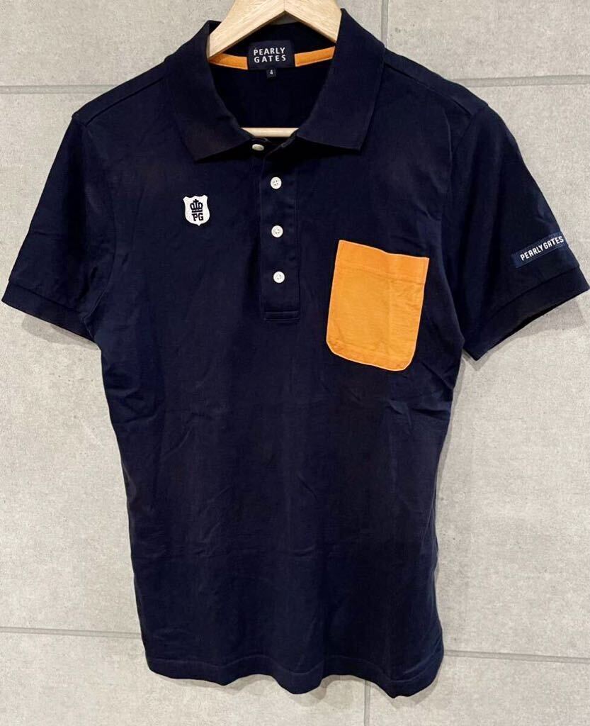 - 夏場に! PEARLY GATES パーリーゲイツ ロゴ刺繍 速乾性 半袖ポロシャツ ネイビー 4サイズ ゴルフウェア ゆうパケ可 ○ 新規×
