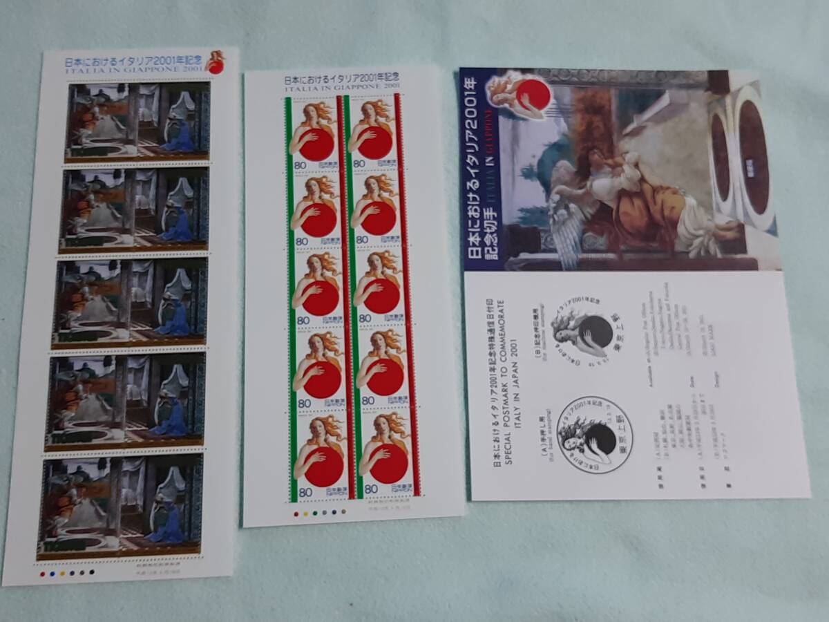 日本におけるイタリア2001年記念 H13 80円・110円切手シート各1枚と解説書