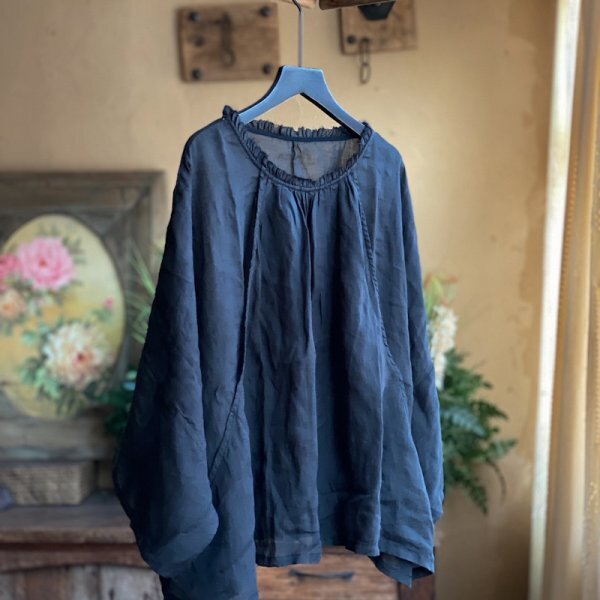 - lgn 2075 チュニック アンティーク風 洋服ミックス ロマンファッション ポップ 楽ちん 麻100% ブラック キャザーネック