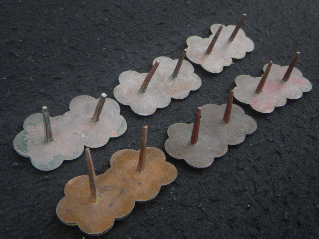 - 六枚 古材 梅花図 重透 約68x38㎜ 建具金具 化粧金具 時代建築金物 武家屋敷城社寺仏閣 日本 釘かくし 釘隠し くぎ隠し