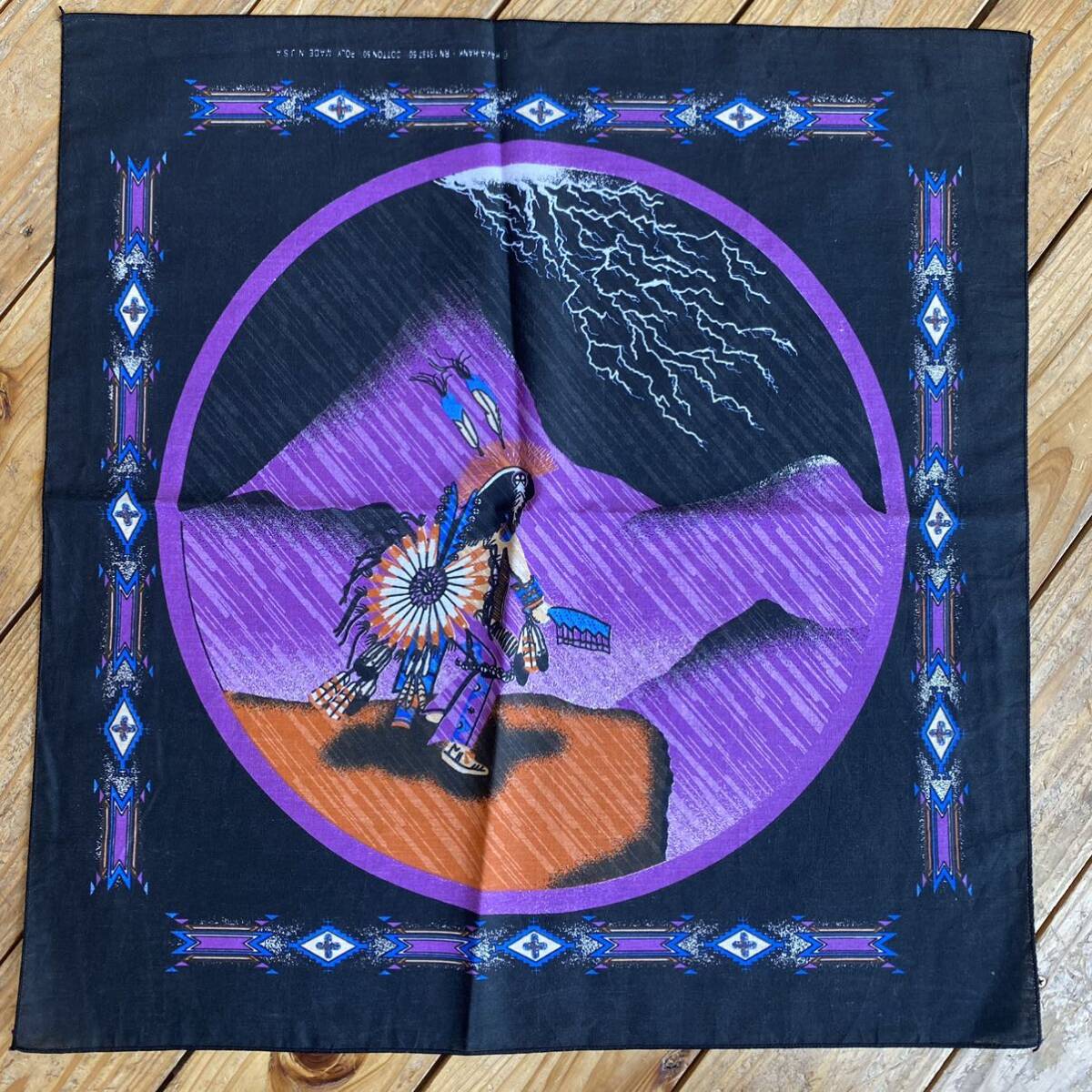 - 送料無料 Vintage ネイティブ柄 バンダナ アメリカ仕入れ 雑貨 ハンカチ ブラック 小物 おしゃれ パープル ヴィンテージ A1043