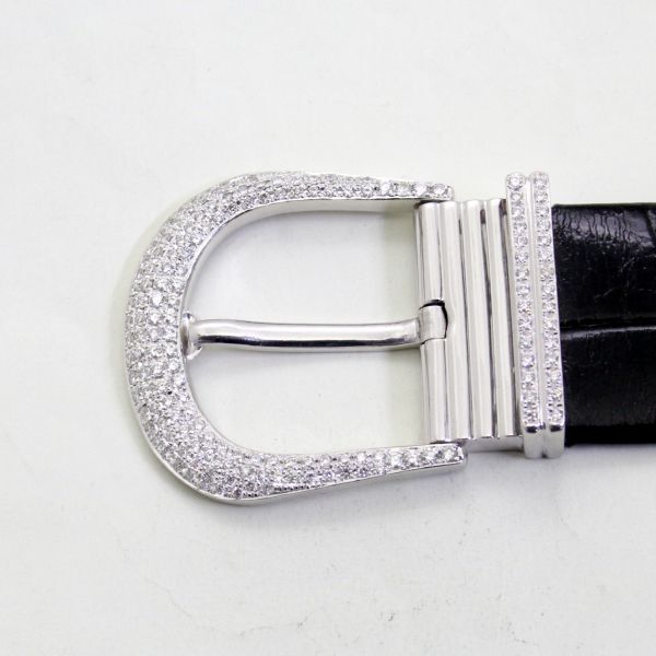 - ◎中古美品◎18金WG ダイヤ 3.876ct バックル 新品クロコダイルベルト付き