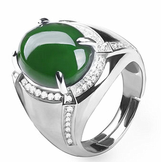 - 新販売 覇気 大粒 緑玉髓 指輪 メンズ 天然和田玉 シルバー925 リング アクセサリー 誕生日 ギフト 男女兼用 フリーサイズ