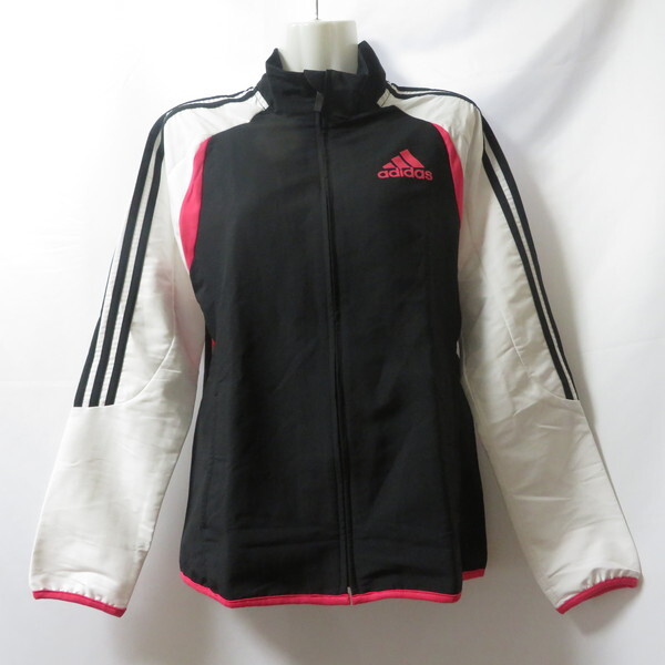 > 古着 レディースL adidas/アディダス クロスジャケット トラックジャージ フルジップ カジュアル スポーツ ホワイト/ブラック O38631