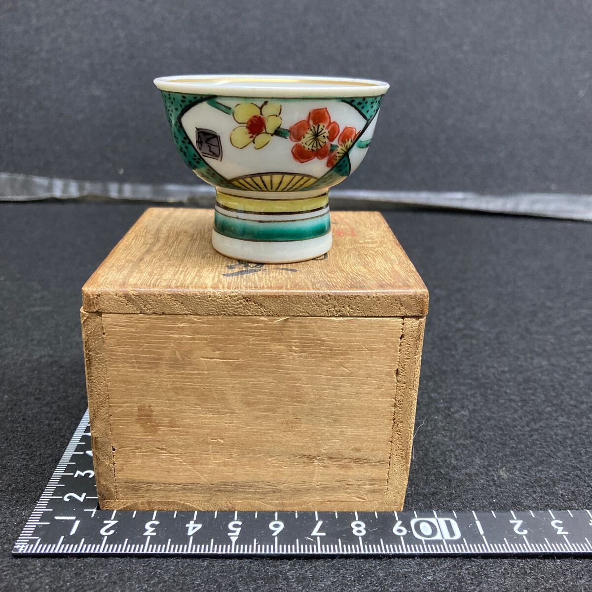- 九谷焼き 北出塔二郎窯(物故作家) 梅紋盃 共箱付き アンテーク