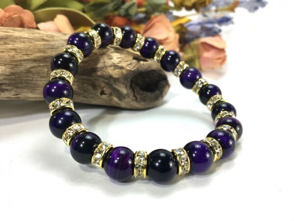 > パープルタイガーアイ パワーストーン ブレスレット 10mm メンズ・レディース (ロンデル:ゴールド) 開運 浄化 数珠ブレス