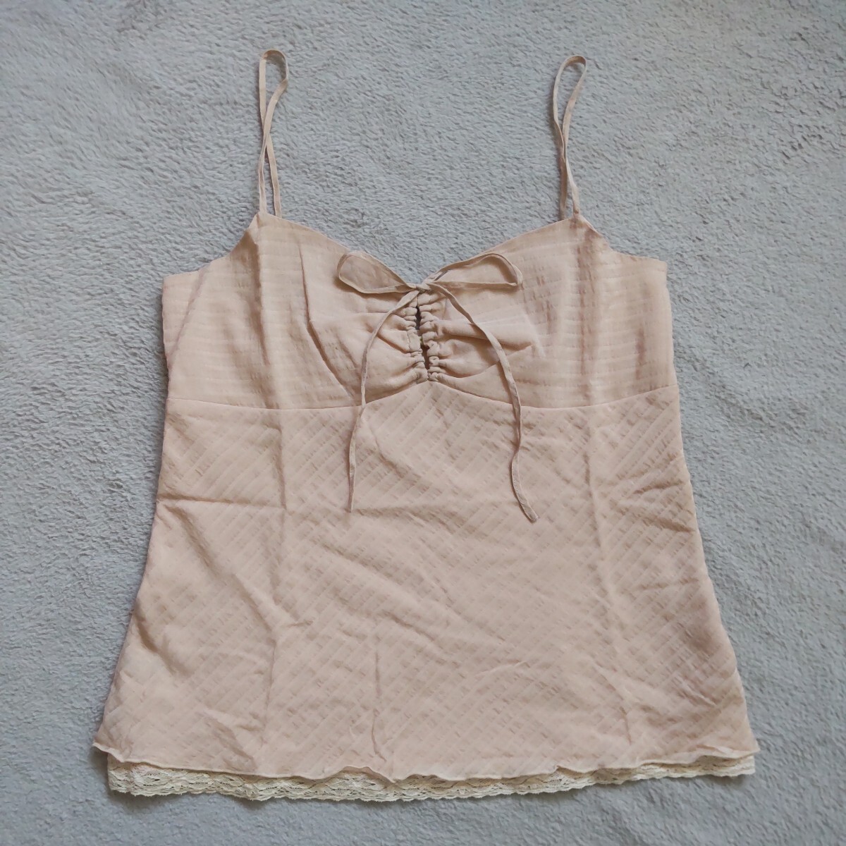 > ROPE ロペ キャミソール カットソー トップス ピンク フリル レース リボン ビスチェ 可愛い系 上品 キレイ系 M