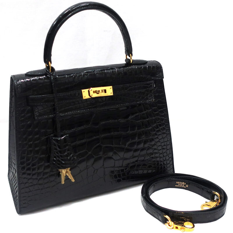 - 【美品】HERMES/エルメス ケリー25 クロコダイル アリゲーター ブラック □B刻印 ショルダーバッグ 600040130
