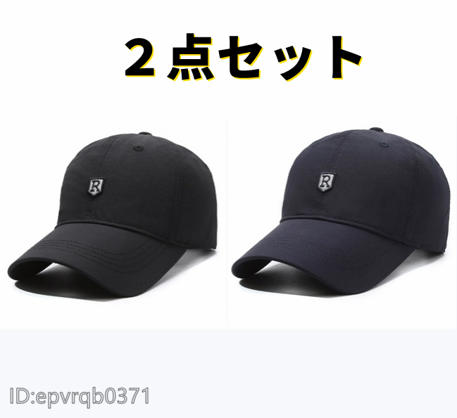 - 2点セット 野球帽 速乾通気 新品未使用 メンズ キャスケット 刺繍 英文字 紳士 帽子 フリーサイズ 調節可能 春夏 黒/ネイビー