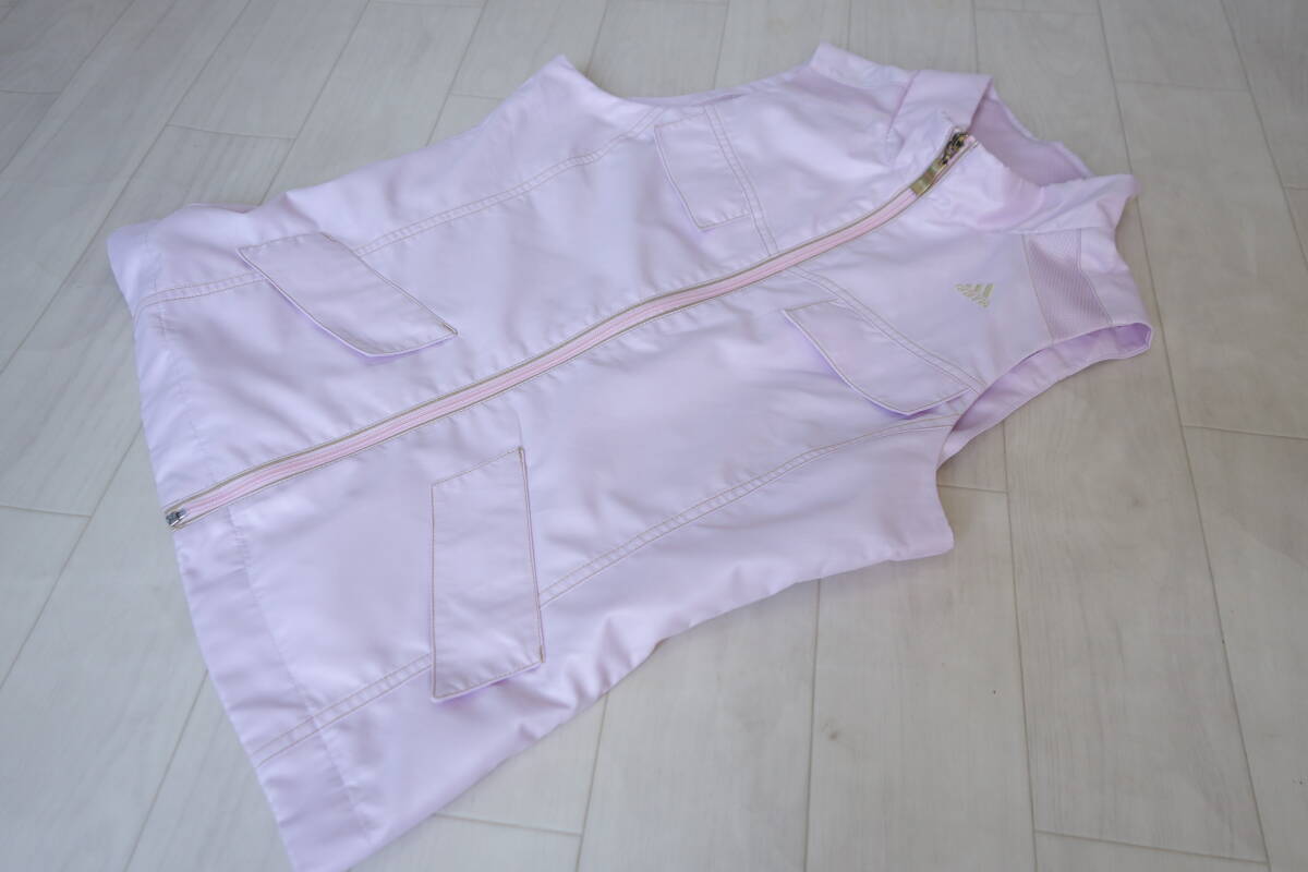 > 大幅値下げ! 美品 アディダス ゴルフウエア ピンク×ゴールド 裏地メッシュ S 送料185円 春色桜色