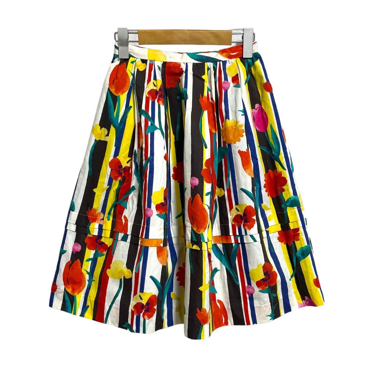 > CHESTY チェスティ ひざ丈スカート フレアスカート 花柄 チューリップ ストライプ 日本製サイズ0 XS〜S相当