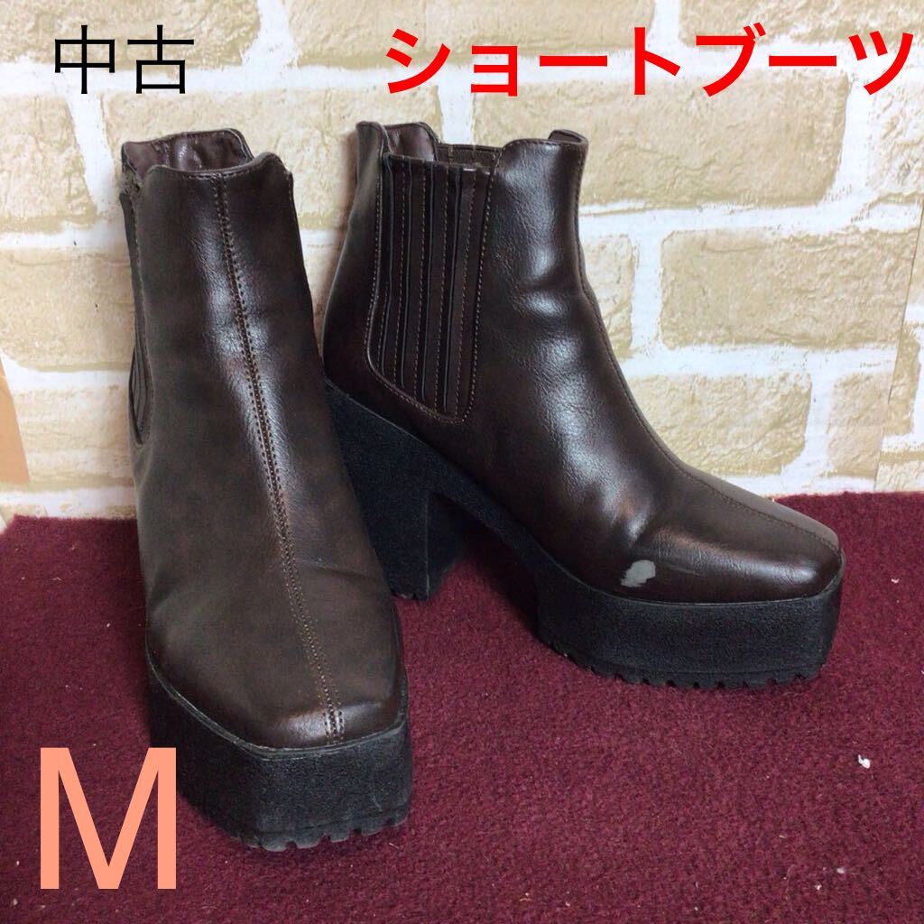 > 【売り切り!送料無料!】A-369 ショート丈ブーツ!ブラウン!茶色!M 23.0cm位!太めヒール!サイドゴア!中古!