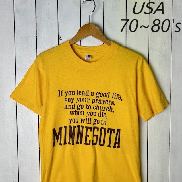 > T●88 USA古着 70s~80s USA製 ARTEX MINNESOTA プリントTシャツ M 黄色 オールド ヴィンテージ アメリカ シングルステッチ アルテックス