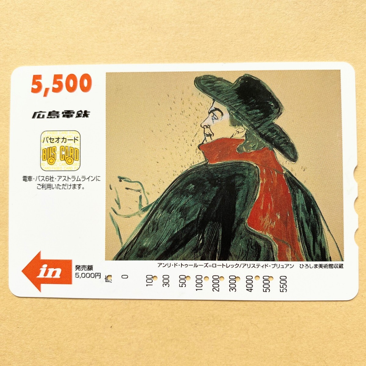 - 【使用済】 絵画パセオカード 広島電鉄 アンリ・ド・トゥールーズ=ロートレック/アリスティド・ブリュアン
