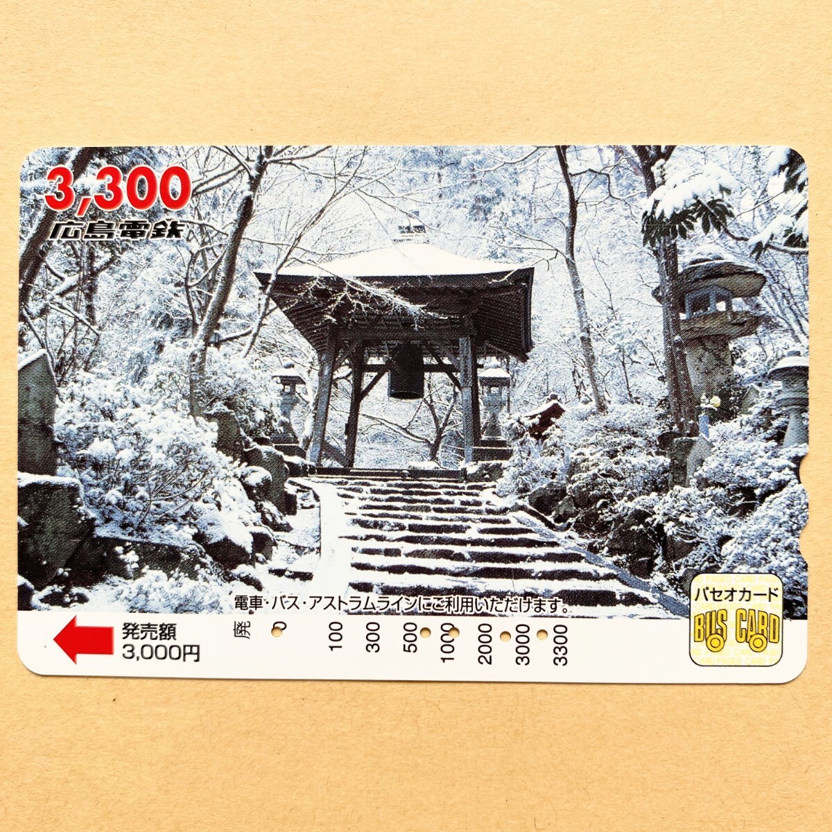 - 【使用済】 パセオカード 広島電鉄 雪景色の鐘