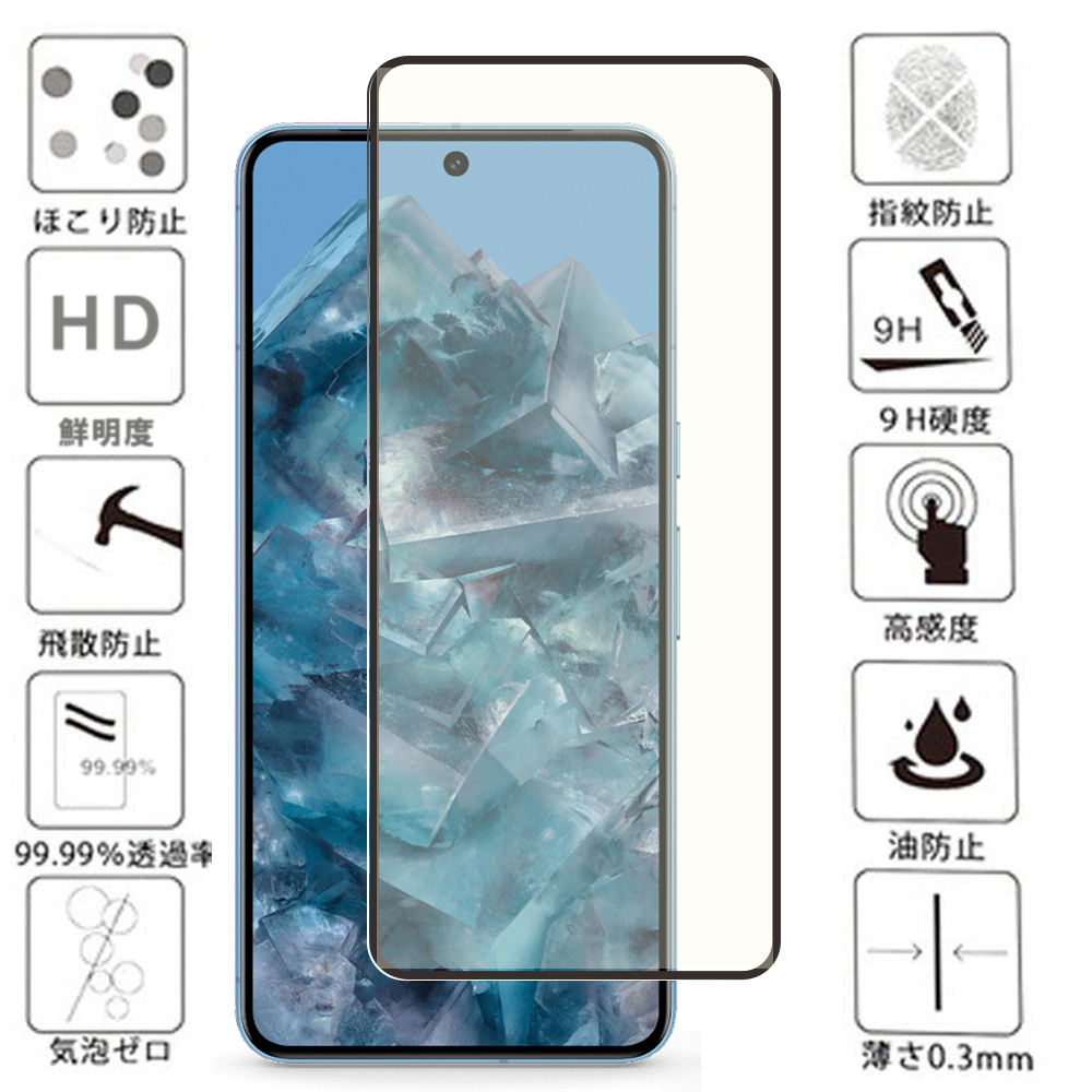 - ブルーライトカット Google Pixel 8 ガラス フィルム グーグル ピクセル 画面 保護 守る 頑丈 目に優しい カバー シール シート 9H Film