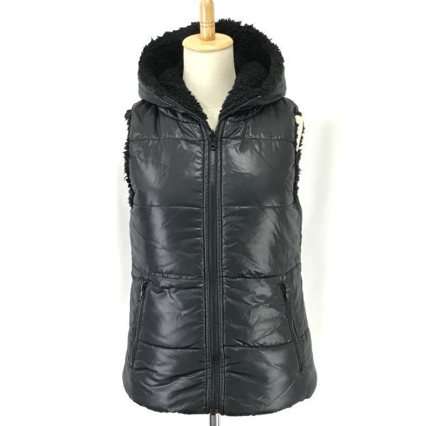 - ローリーズファーム/LOWRYS FARM★リバーシブル/中綿入り/もこボア裏地ベスト【レディースF/黒/black】Jacket/Jumper/Best◆BH748