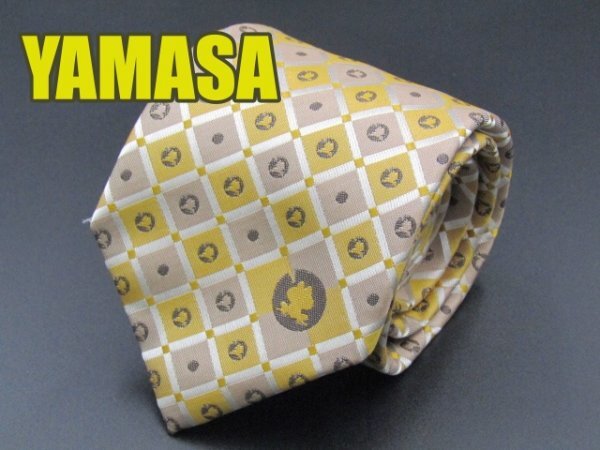 - 【ニューパルサー】【スロットメーカー】 OC 766 ヤマサ YAMASA ネクタイ 黄系 チェック ワンポイント カエルのブランドロゴ ジャガード