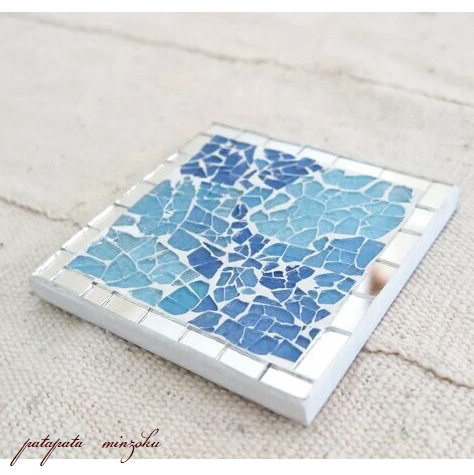 - モザイクガラス スクエア コースター ブルーシャロー ガラス キッチン雑貨 パタミン 店舗什器 ドリンク トレイ 雑貨