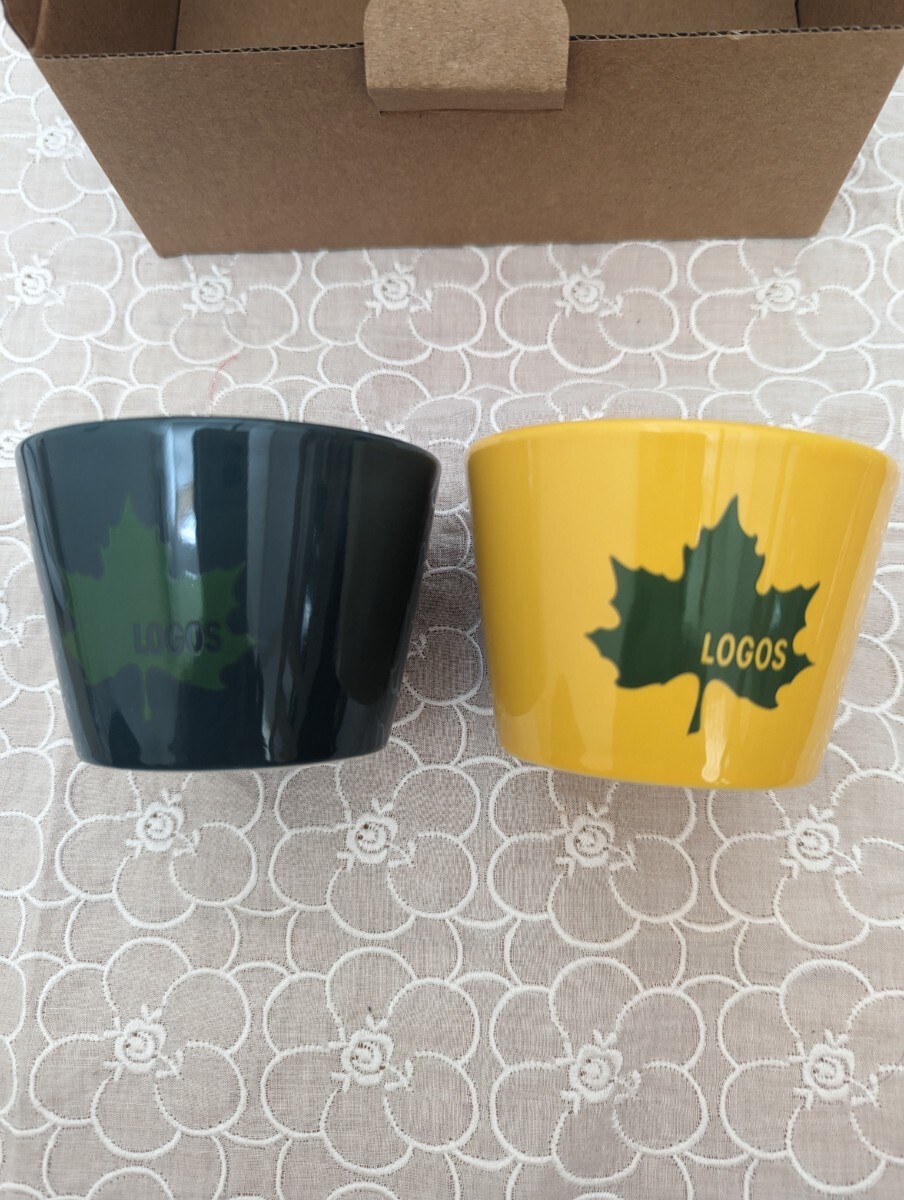 - 未使用☆LOGOS☆箱入り☆ペアカップ☆ボウル☆マルチカップ☆磁器☆容量約170ml☆グリーン・イエロー☆送料込み
