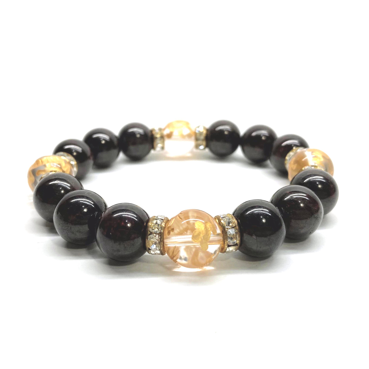 - 四神獣金彫水晶×ガーネット 12mm パワーストーン ブレスレット天然石 青龍 白虎 玄武 朱雀 運気上昇 お守り 金運 四神獸 四神相応 G