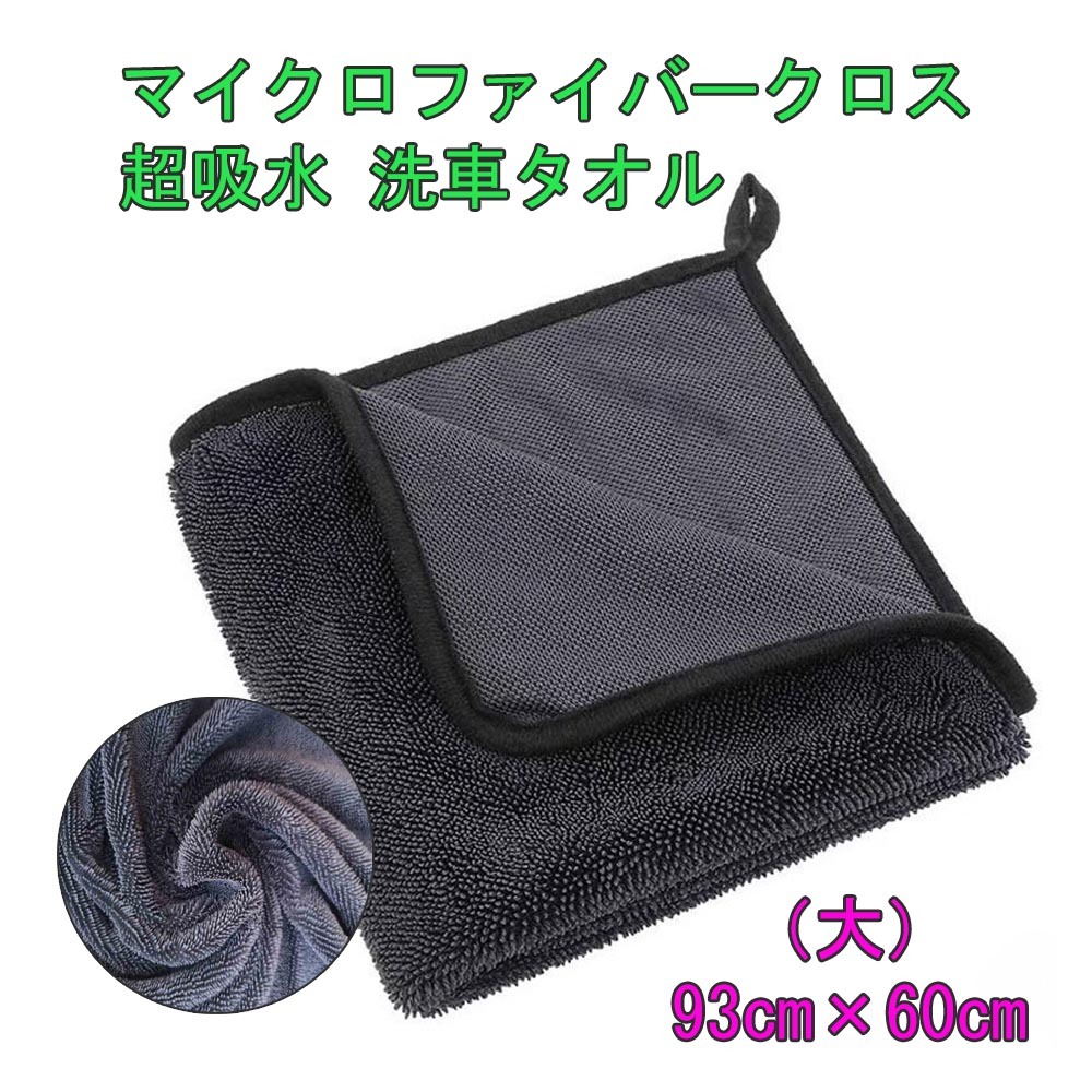 - 洗車 タオル 超吸水 マイクロファイバークロス 拭き上げ 60cm × 93cm 拭き上げ グレー ビッグサイズ 1枚