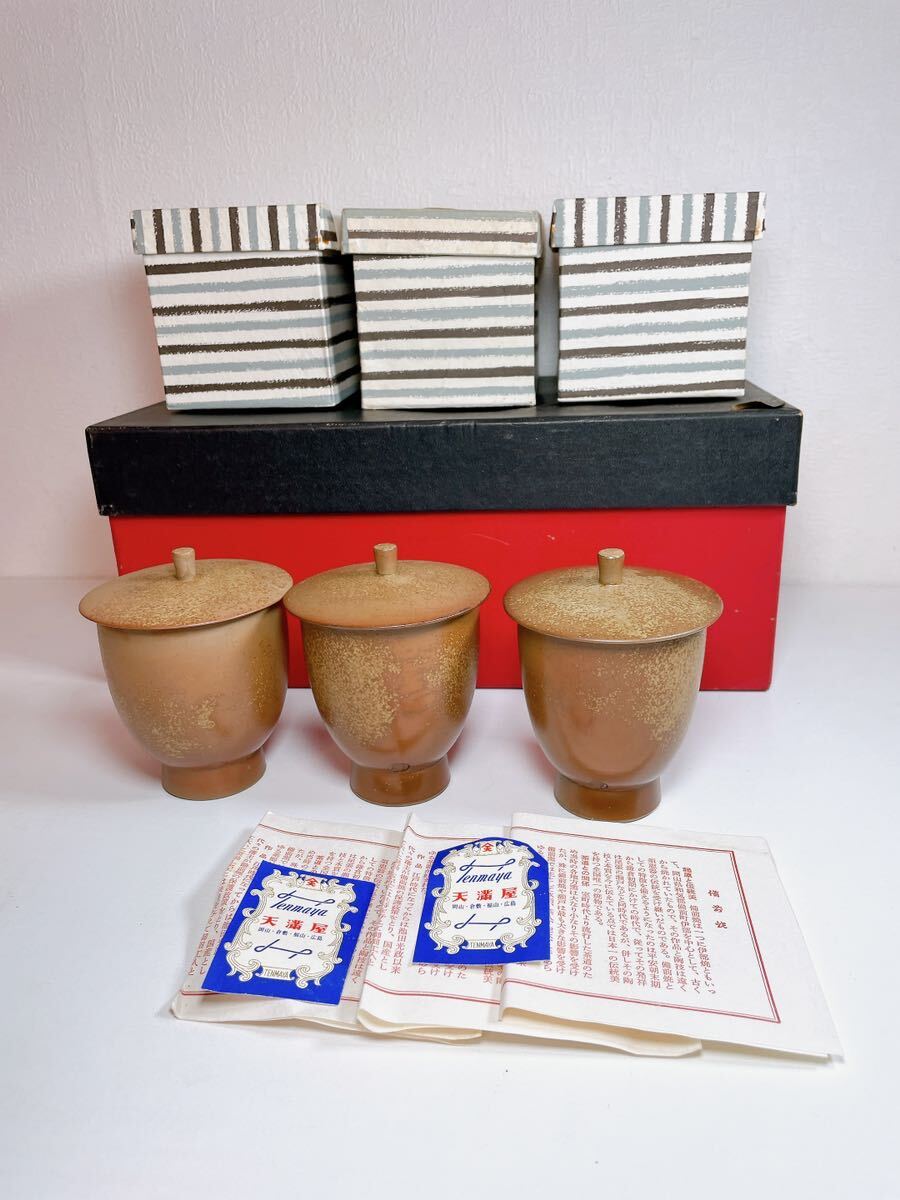 - 763 備前焼 木村陶峰 作 湯呑 3客