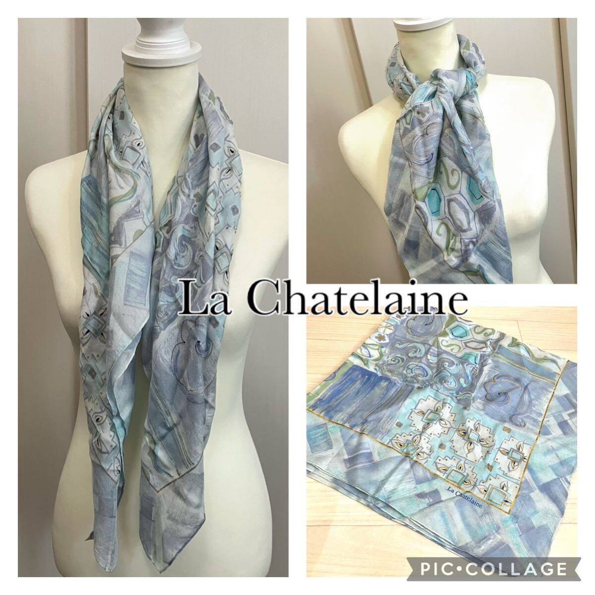 - La Chatelaine ラシャトレーヌ スカーフ 大判 ブルー ショール 柔らかい シルク100% ストール