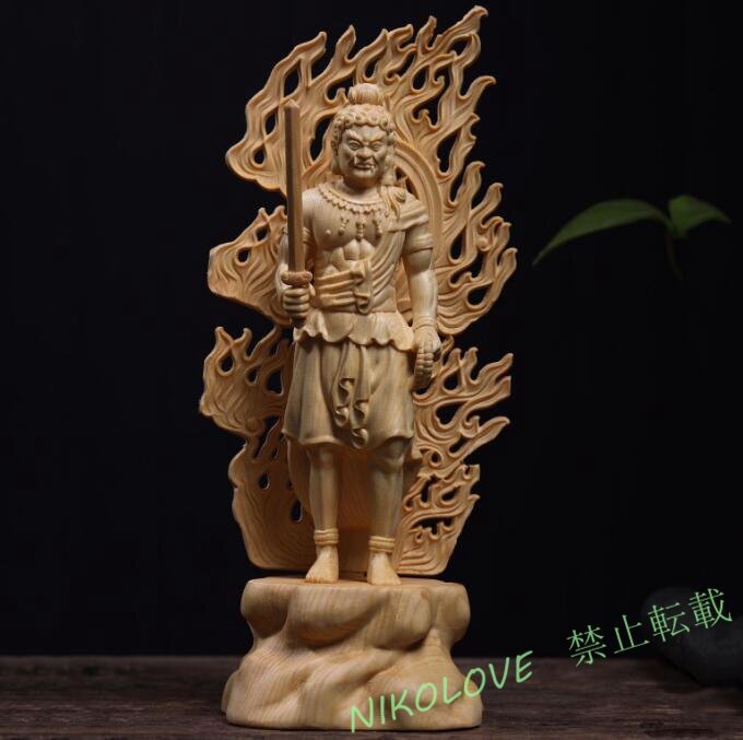 - 彫刻精密彫刻 不動明王 木彫 仏像 不動明王像 檜木 高約28c 仏像 LD490