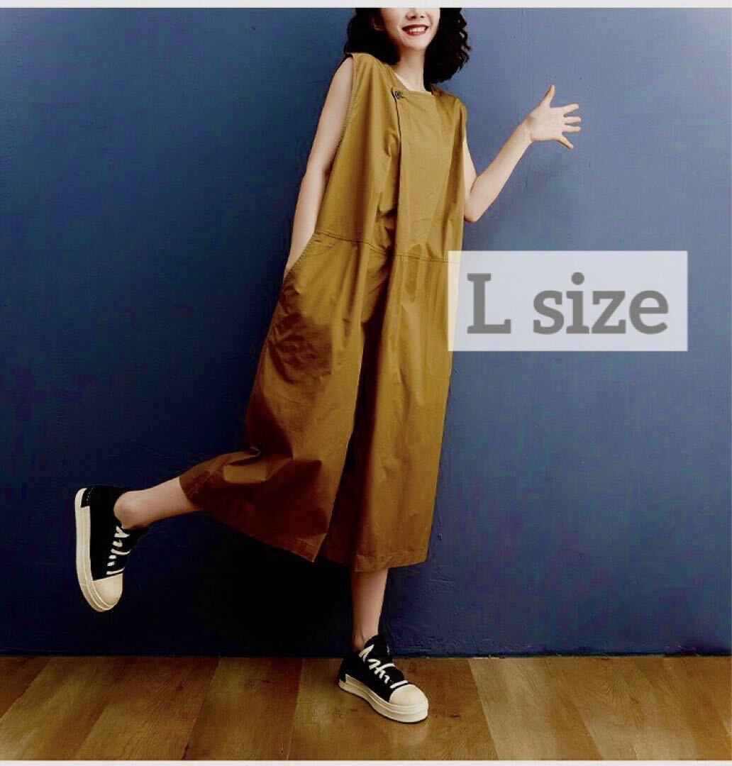 - サロペット オールインワン ノースリーブ ワンピース ワイドパンツ 黄色 L