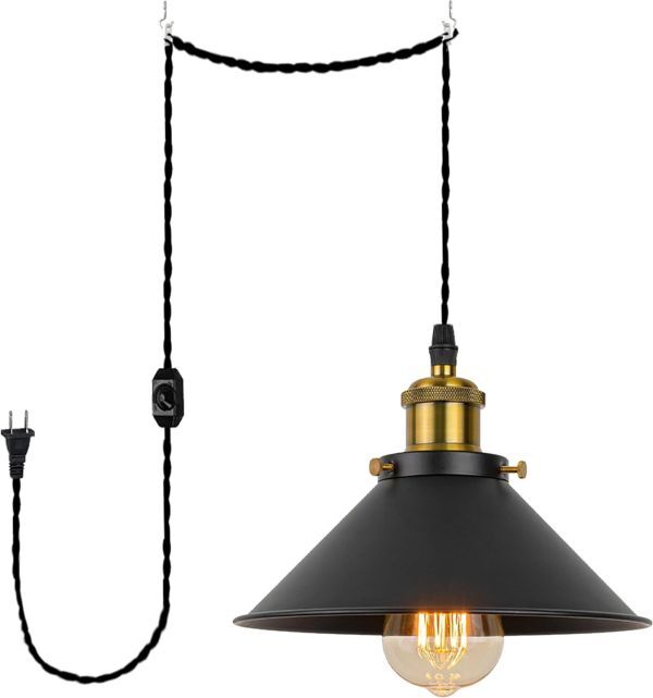 - ケビン ペンダントライト コンセント式 吊り下げライト コードに調光スイッチつき 調光対応 口金E26 電球別売り 直径22cm【ブラック】