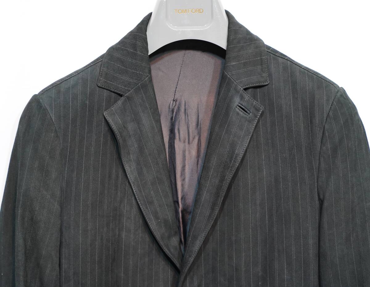 - エルメネジルドゼニア Ermenegildo Zegna レザージャケット レザー 縦ストライプ メンズ 46
