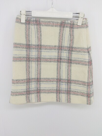 > ◇ Khaju カージュ SHIPS シップス チェック ミニ 台形 スカート サイズ26 ライトベージュ系 レッド系 マルチ レディース P