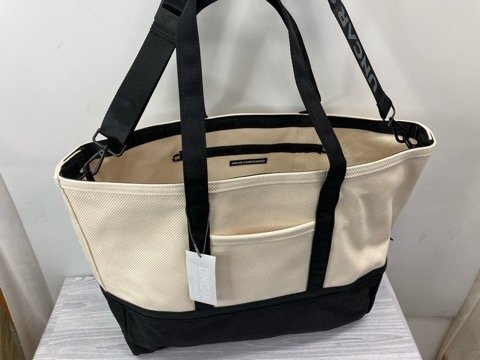 > ★送料割引!トートバッグ ゴルフバッグ 2WAY 防雨防汚カバー仕様 大型 ヘビーウエイト綾織布 生成X黒 UNCAR COMPOUNDED★未使用