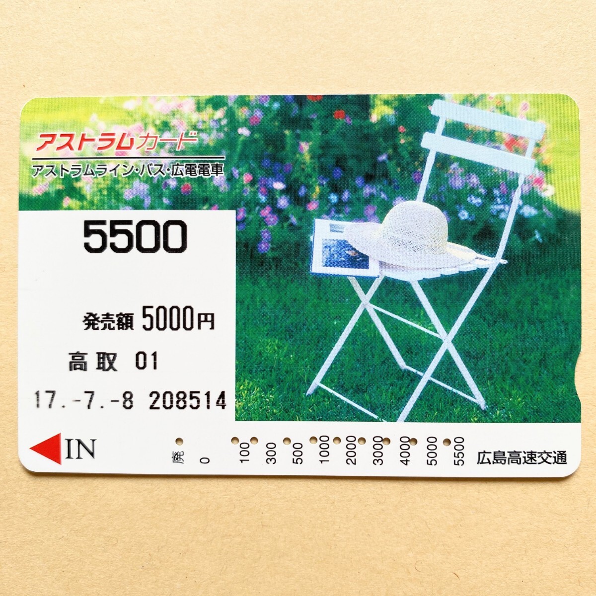 - 【使用済】 アストラムカード 広島高速交通 ガーデンチェアと帽子
