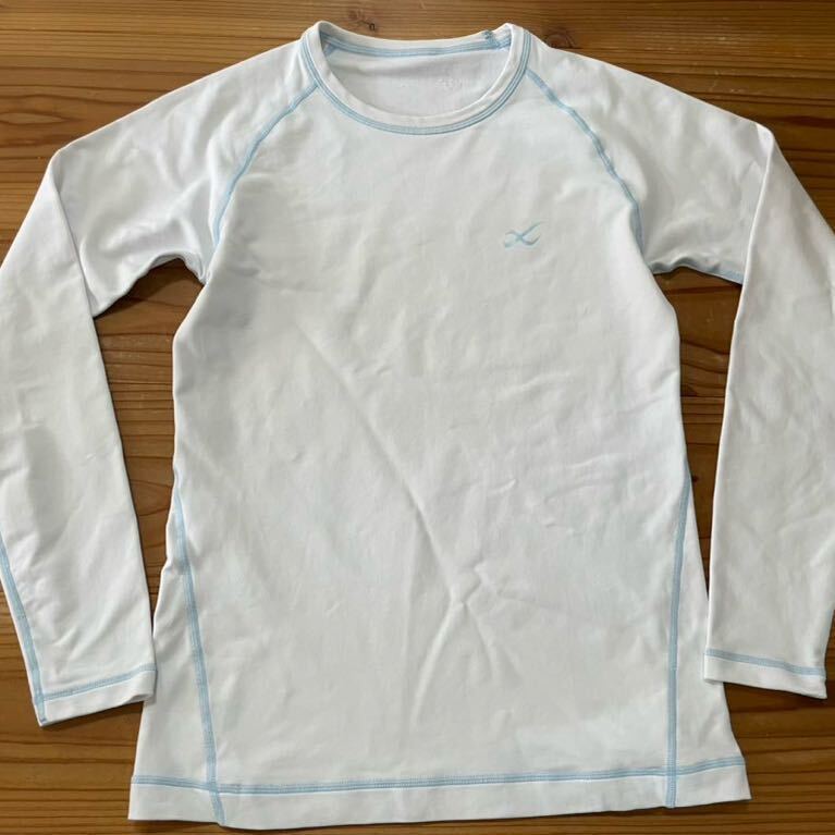 - 送料込み!CW-X 長袖インナー ワコール 白×水色 Sサイズ ロンT シーダブリューエックス 長袖Tシャツ GOLF ゴルフウェア