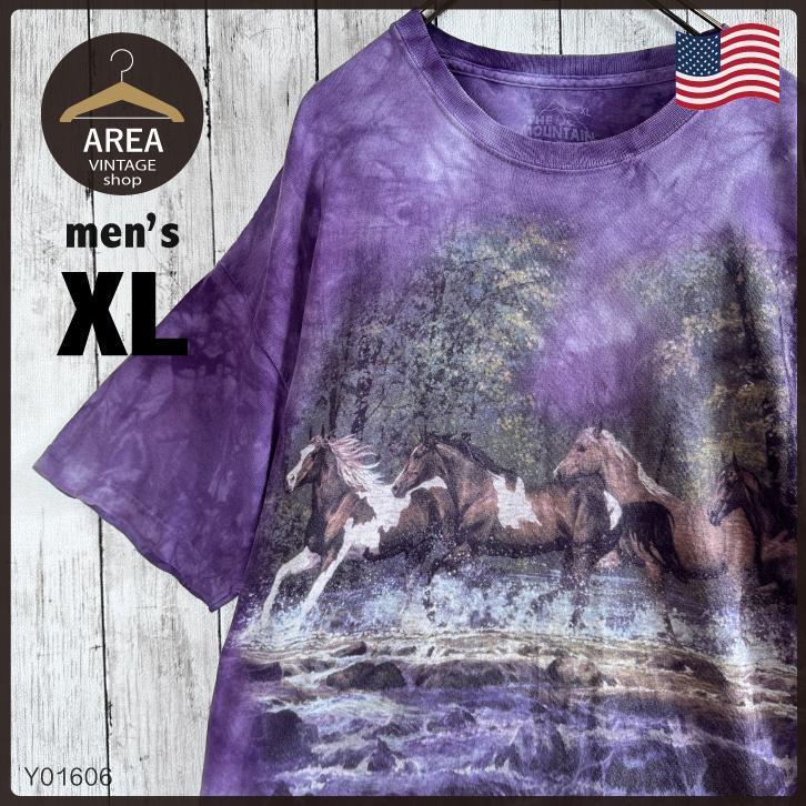 - 【THE MOUNTAIN】古着Tシャツ半袖メンズXLアメリカパープル馬イラスト