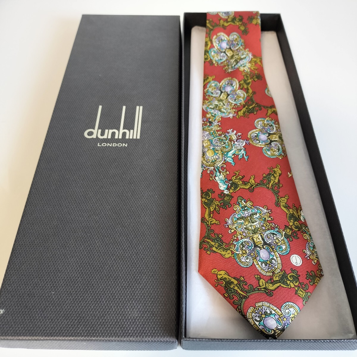 - ダンヒル(Dunhill)赤緑お城Dロゴネクタイ
