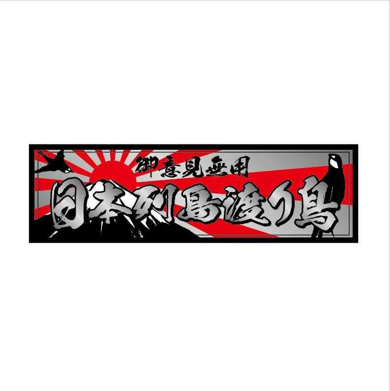- (シルバー)日本列島渡り鳥ステッカー 銀 15cm 黒フチ銀文字 デコトラ ダンプ