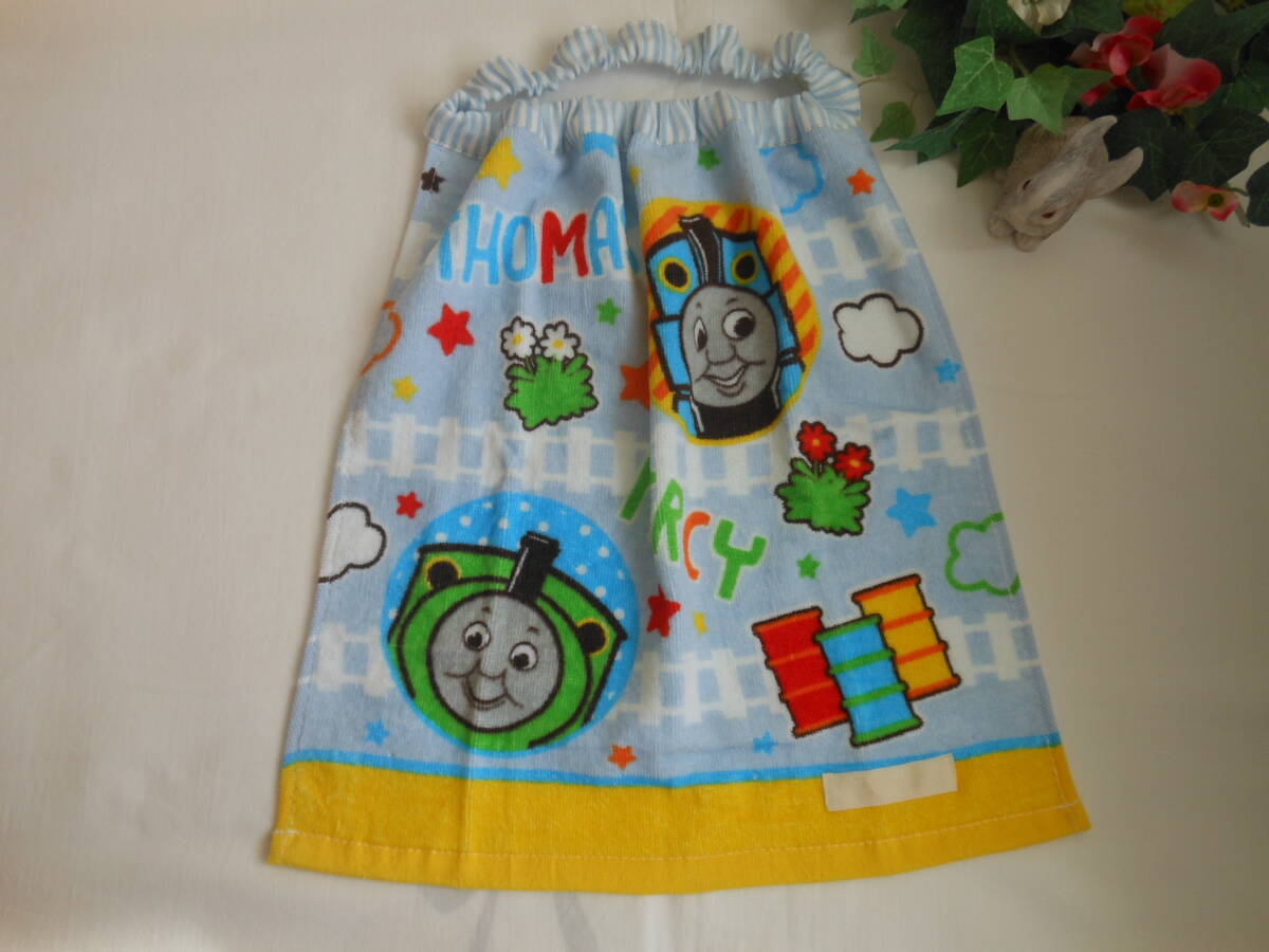 - お食事タオルエプロン 首ゴム トーマス グレー① ダブルガーゼ ネーム付き 保育園