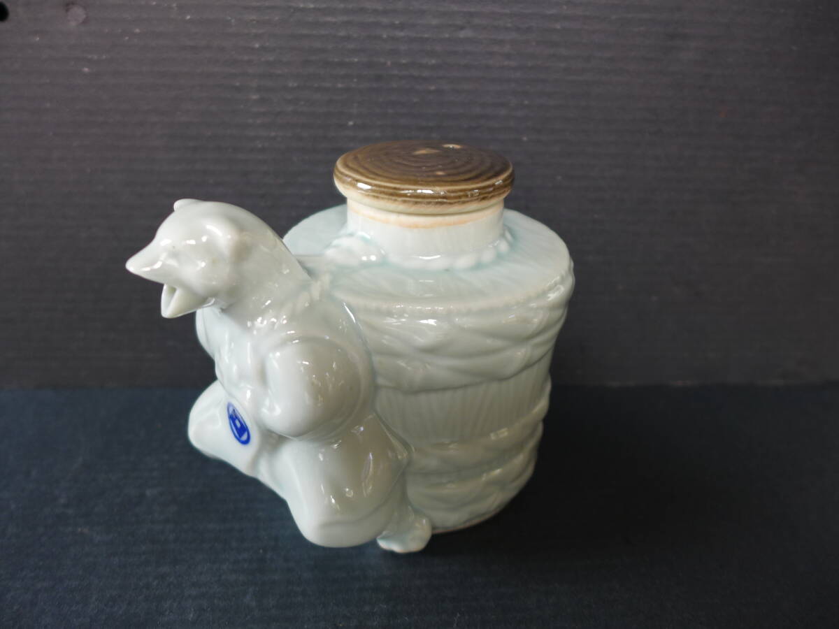 - ★ 時代物【ストック品】樽を担ぐ狸形状 醤油入 醤油差 陶磁器 レトロ アンティーク 骨董 ★