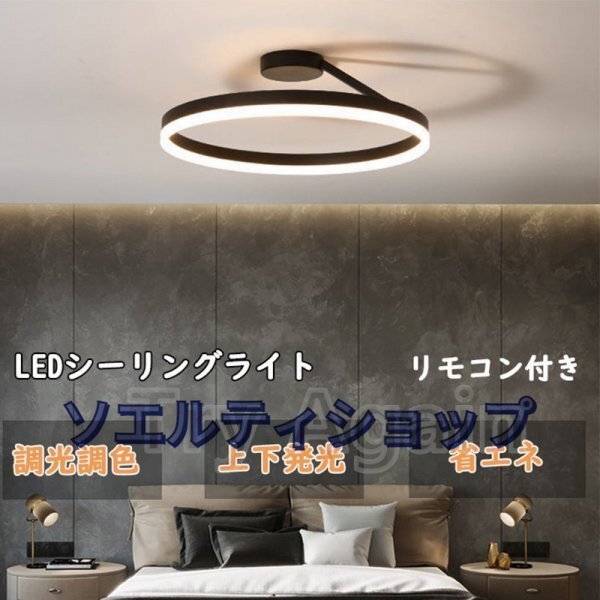 - シーリングライト led 照明器具 おしゃれ 調光調色 天井照明 インテリア ライト 北欧 節電 省エネ リビング照明 40cm 上下発光 ブラック
