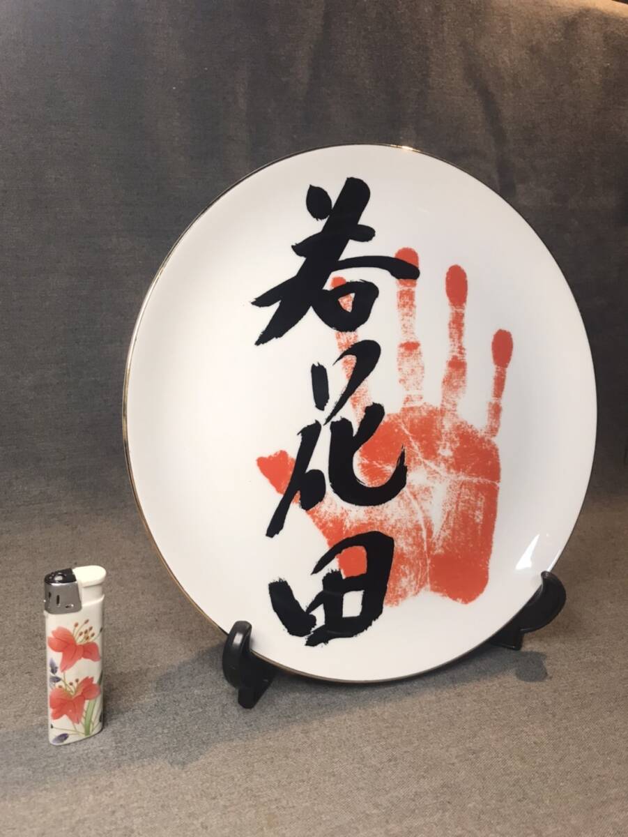 - 0127-6 皿 飾皿 焼物 皿立付 相撲 手押型入 茶道具 書道具 盆栽具 華道具